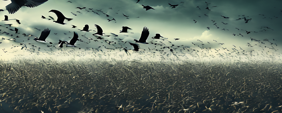 We were both in something of a state of shock as we watched the black stream of birds fade off into the distance. Neither of us knew what to say, so we just stood there in silence for a bit. Eventually I was able to muster up the words to ask my father what was going on. He had no more of an idea of what was happening than I did. After another half an hour or so, he told me to go inside and keep an eye on my mother and sister while he tried to go and round up the horses.
